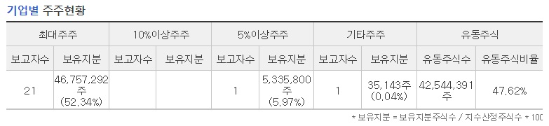 5%이상 주주 : 5,335,800 주 (5.97%)
