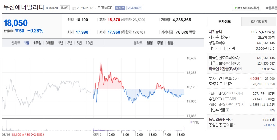 두산에너빌리티 (034020) - 주가 전망 및 주식 분석