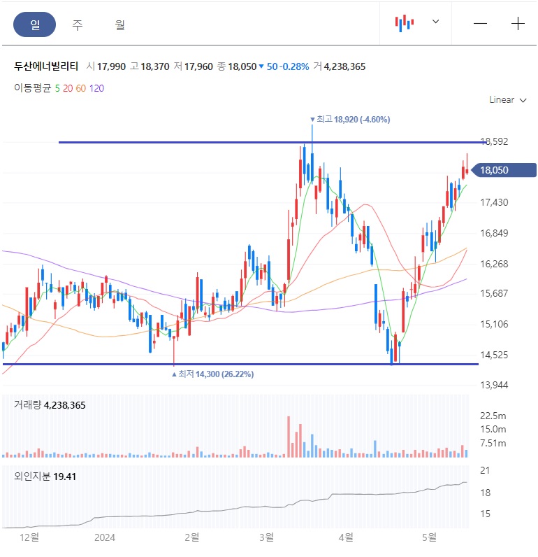 단기적으로는 일봉 5일선 지지여부를 확인하시고, 중장기적으로는 월봉 60일선 지지여부 확인이 중요합니다.