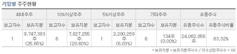 10%이상 주주 : 7,827,255 주 (20.60%)