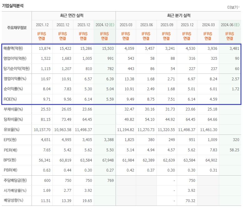올해 전망치도 매출액 대비 영업이익 및 당기순이익이 감소하는 약세 구간 입니다.