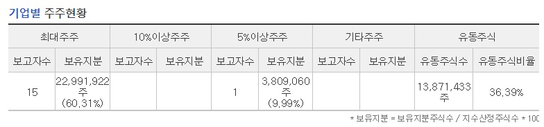 최대주주 : 22,991,922 주 (60.31%)