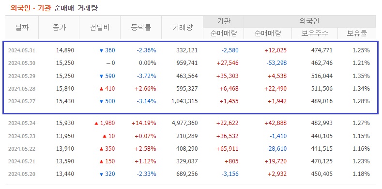 실적에 개선에 따른 주가 상승을 수급을 통해서 알아 보겠습니다.