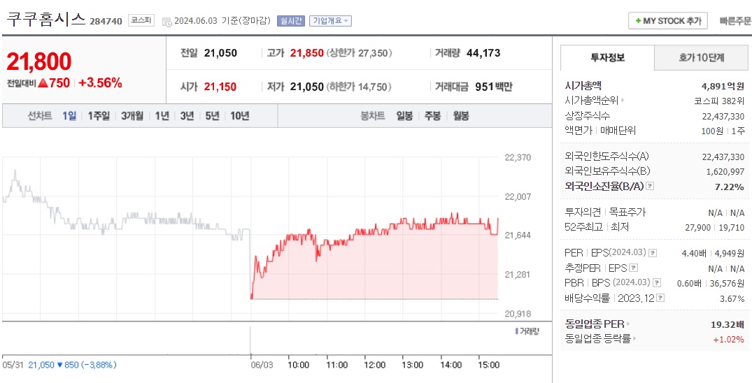 [종목분석] 쿠쿠홈시스(284740) - 주가 전망 및 주식 분석