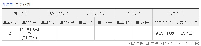 외국인 보유주식수 : 1,678,925 주 (8.39%)