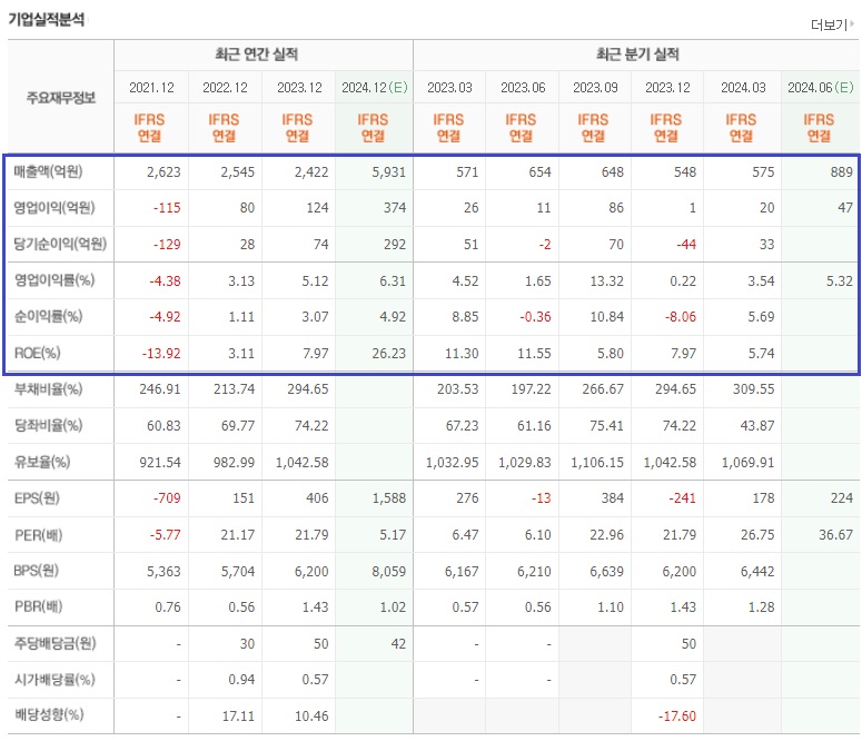최근 3년 실적을 보면, 2021년에는 영업이익 및 당기순이익이 적자였다가 2022년에 흑자전환하였었습니다. 매출은 감소하였지만, 영업이익 및 당기순이익은 개선되는 모습을 보여줬었습니다.