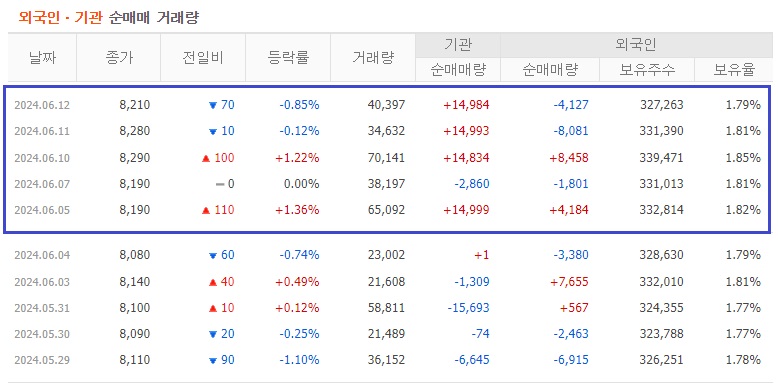 실적 만큼, 중요하것이 수급이기에 수급을 살펴 보겠습니다.