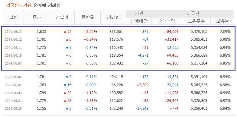 외국인 보유주식수 : 5,470,105 주 (7.09%)
