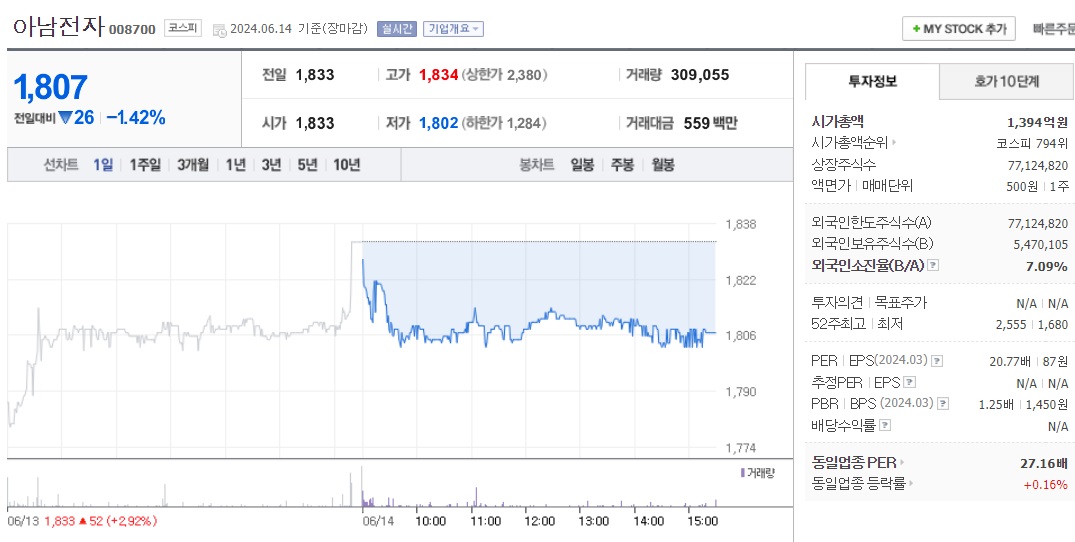 아남전자(008700) - 주가 전망 및 주식 분석