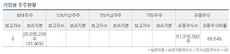 최대주주 : 25,805,238 주 (33.46%)