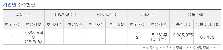 외국인 보유주식수 : 631,188 주 (4.03%)