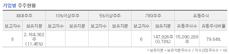 외국인 보유주식수 : 2,761,726 주 (14.61%)