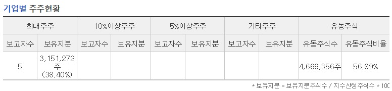 최대주주 : 3,151,272 주 (38.40%)