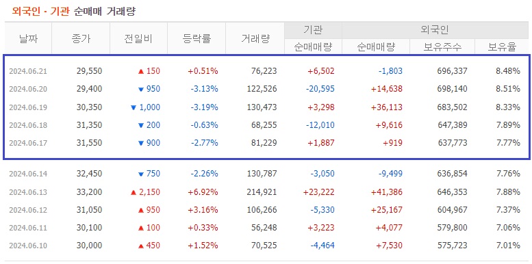 외국인 보유주식수 : 698,140 주 (8.51%)