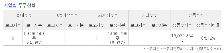 5%이상 주주 : 1,699,799 주 (6.03%)