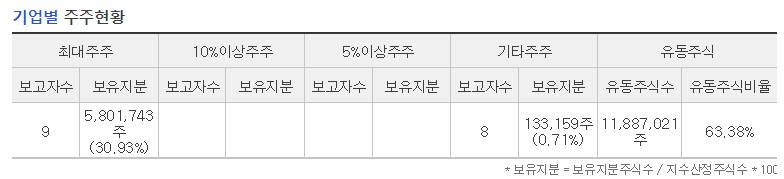 최대주주 : 5,801,743 주 (30.93%)