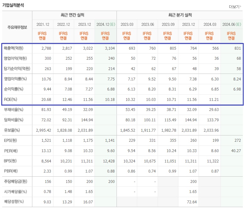 올해 1분기 실적도 전년동기 대비 매출액 및 영업이익과 당기순이익이 모두 감소한 결과를 보여줬고, 2분기 실적도 매출액은 증가하지만, 영업이익과 당기순이익은 소폭 감소하는 결과를 에상하고 있습니다.